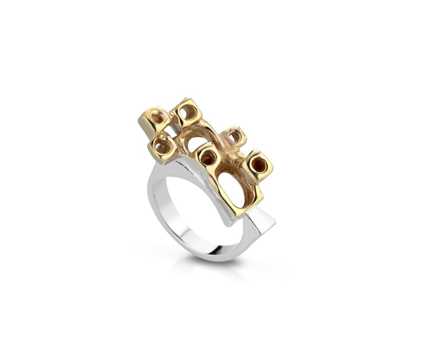Anello in argento e bronzo con bagno oro