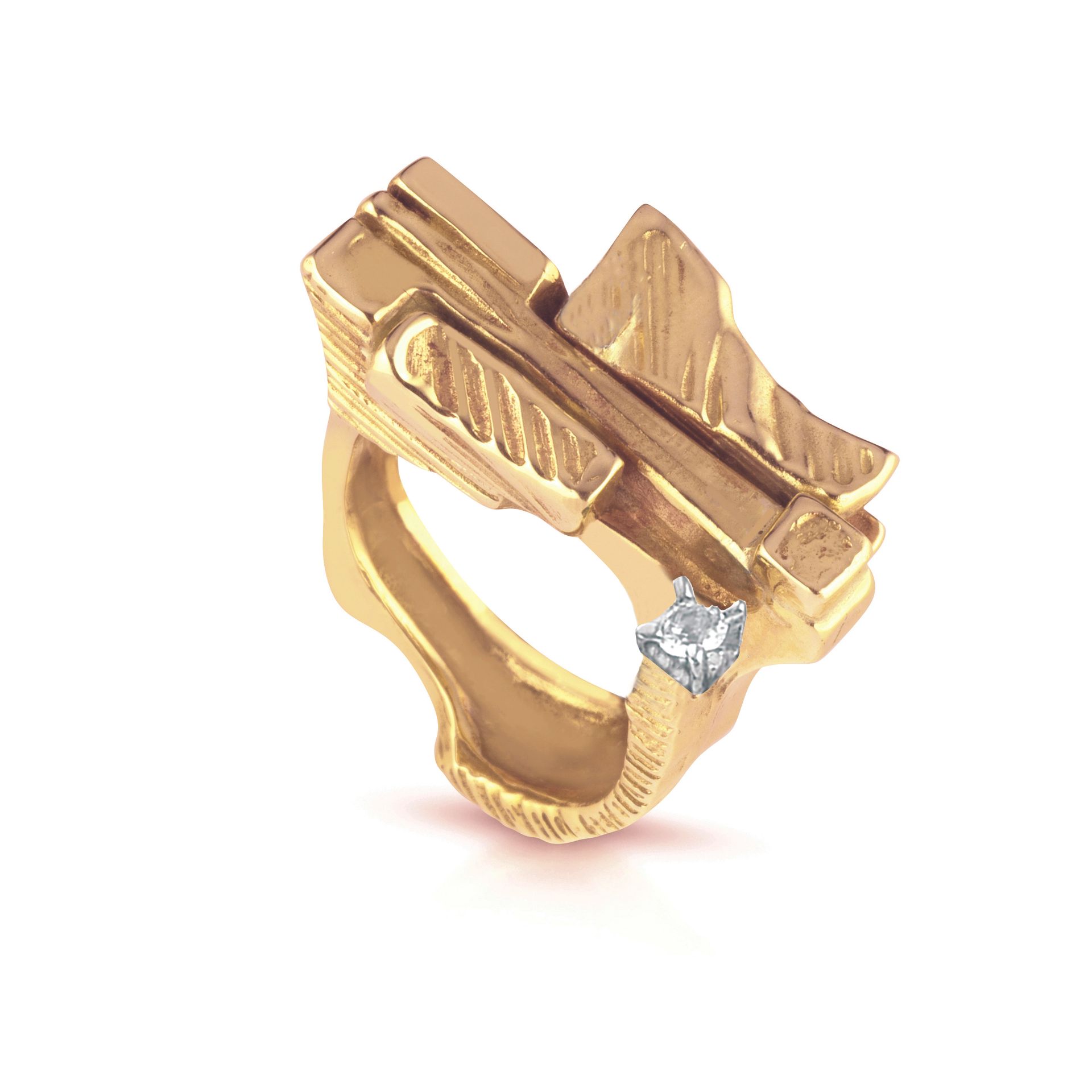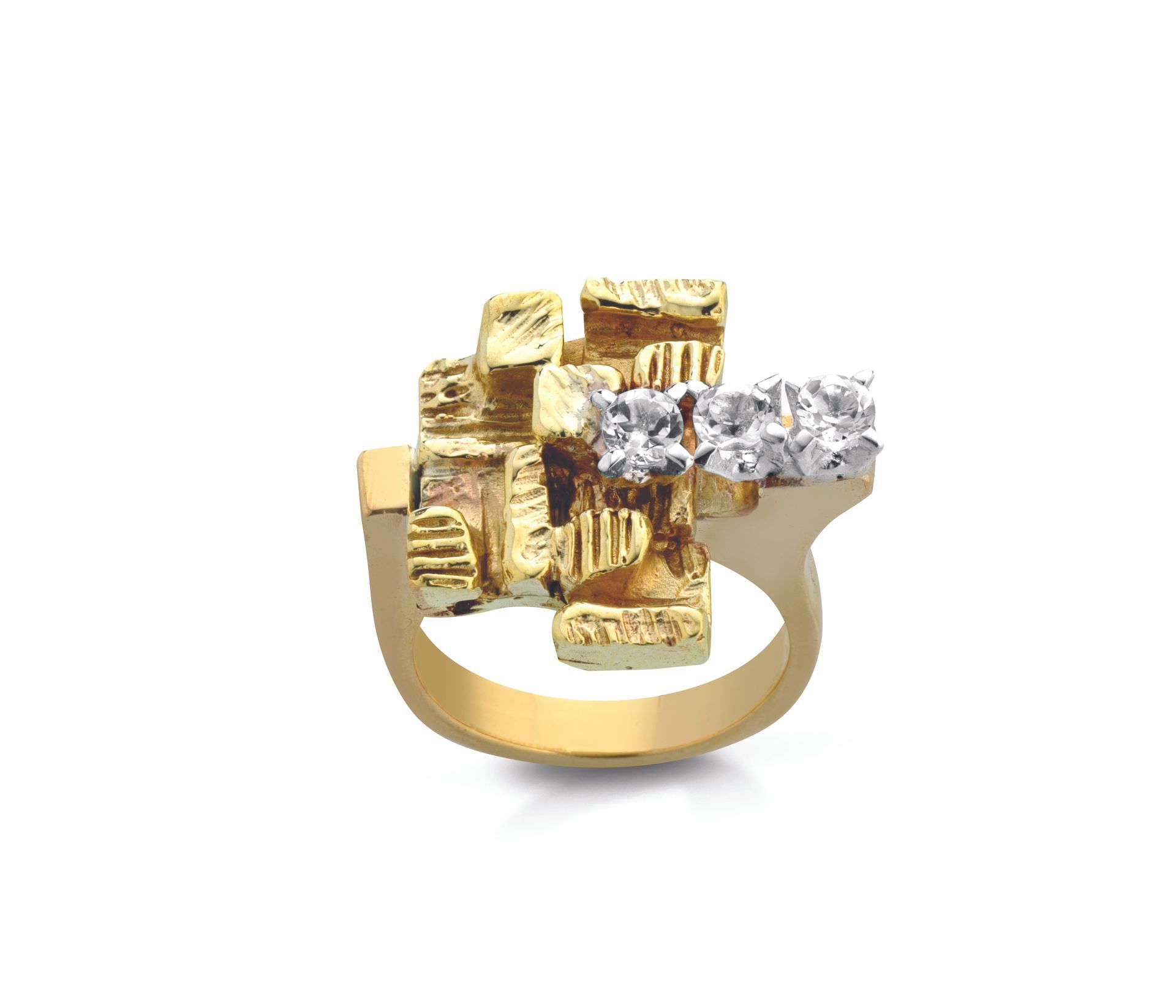 Anello in bronzo, oro e diamanti con bagno oro 18 carati