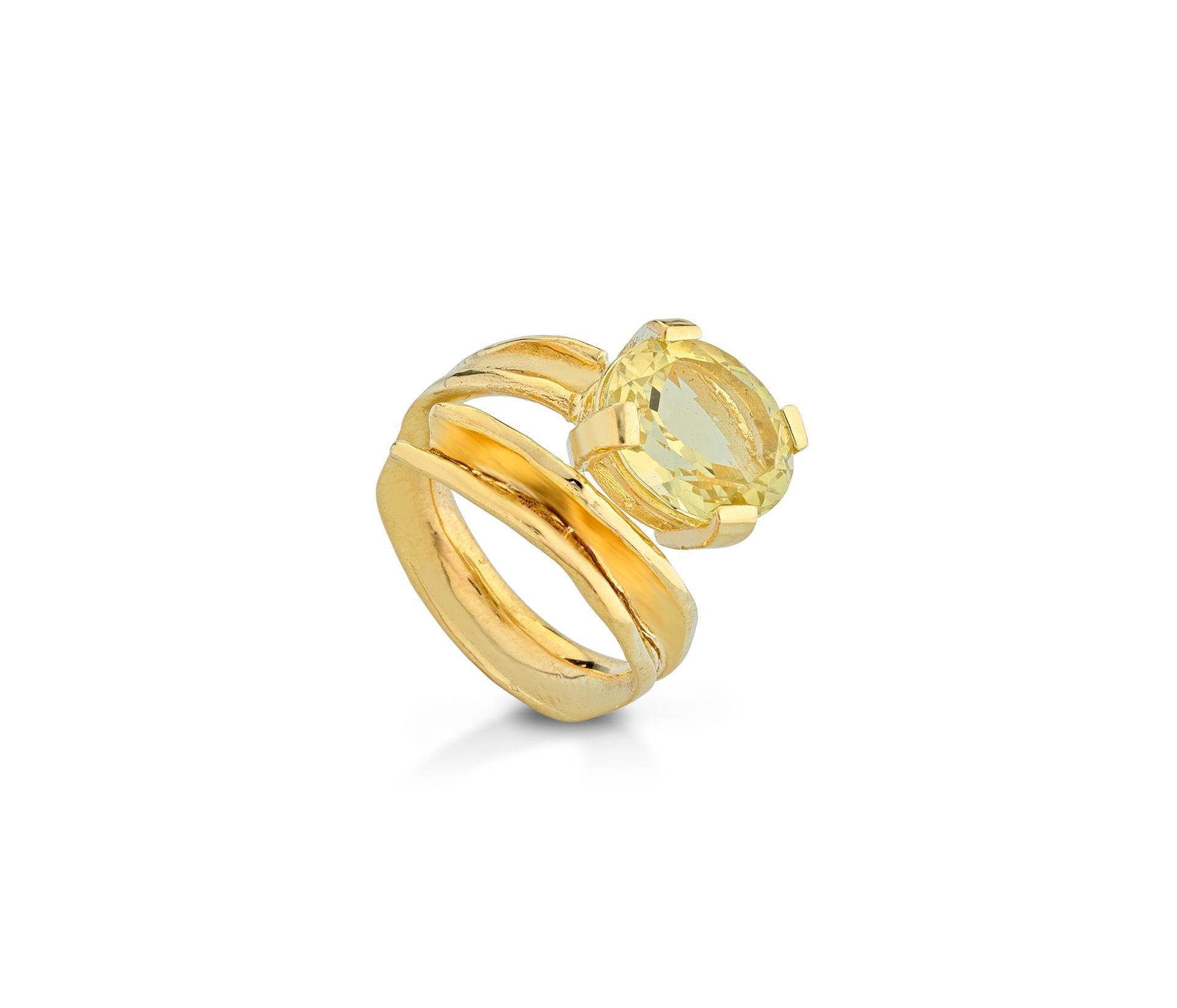 Anello in bronzo, argento, citrino e topazio bianco (naturali) con bagno oro 18 carati