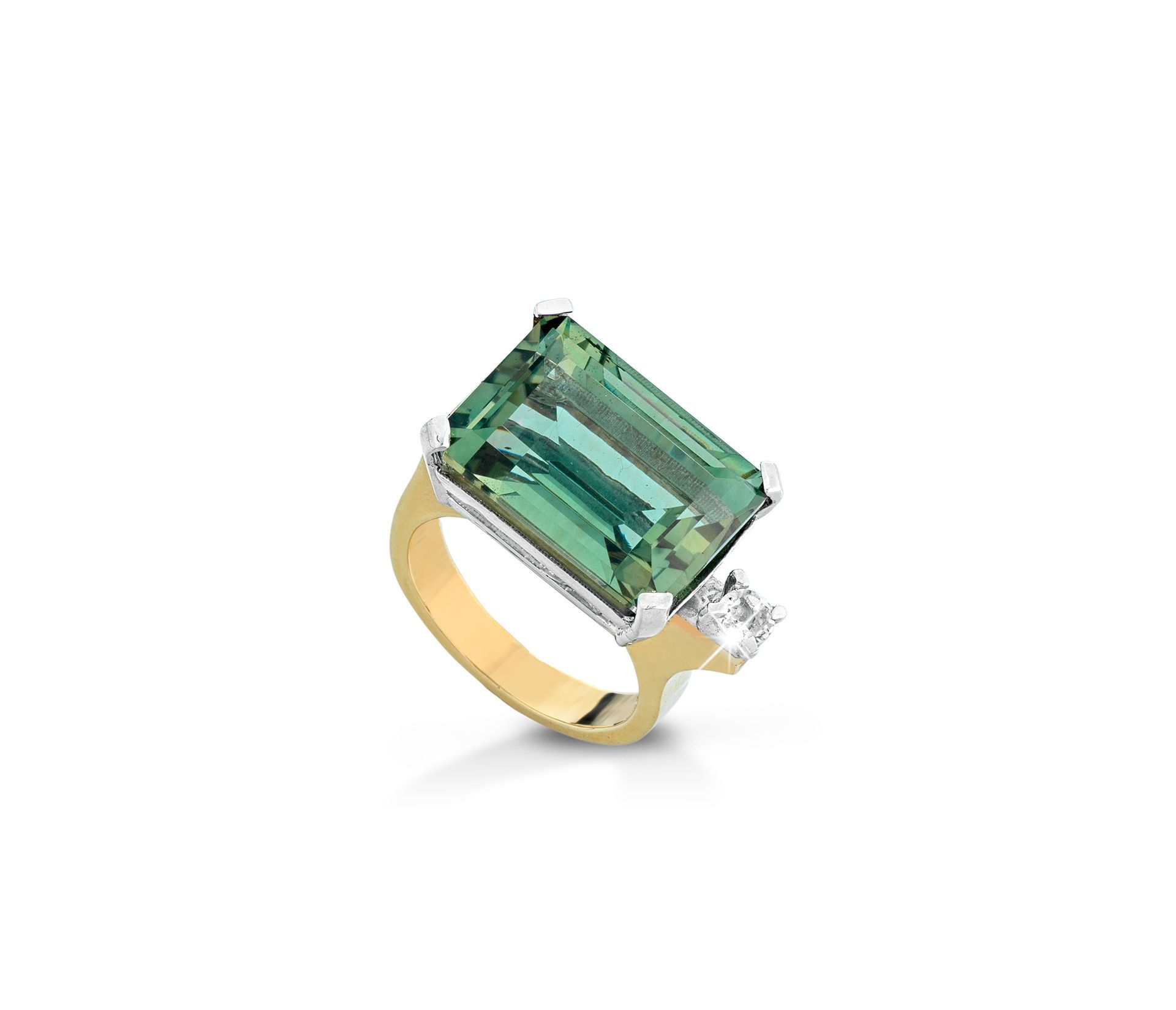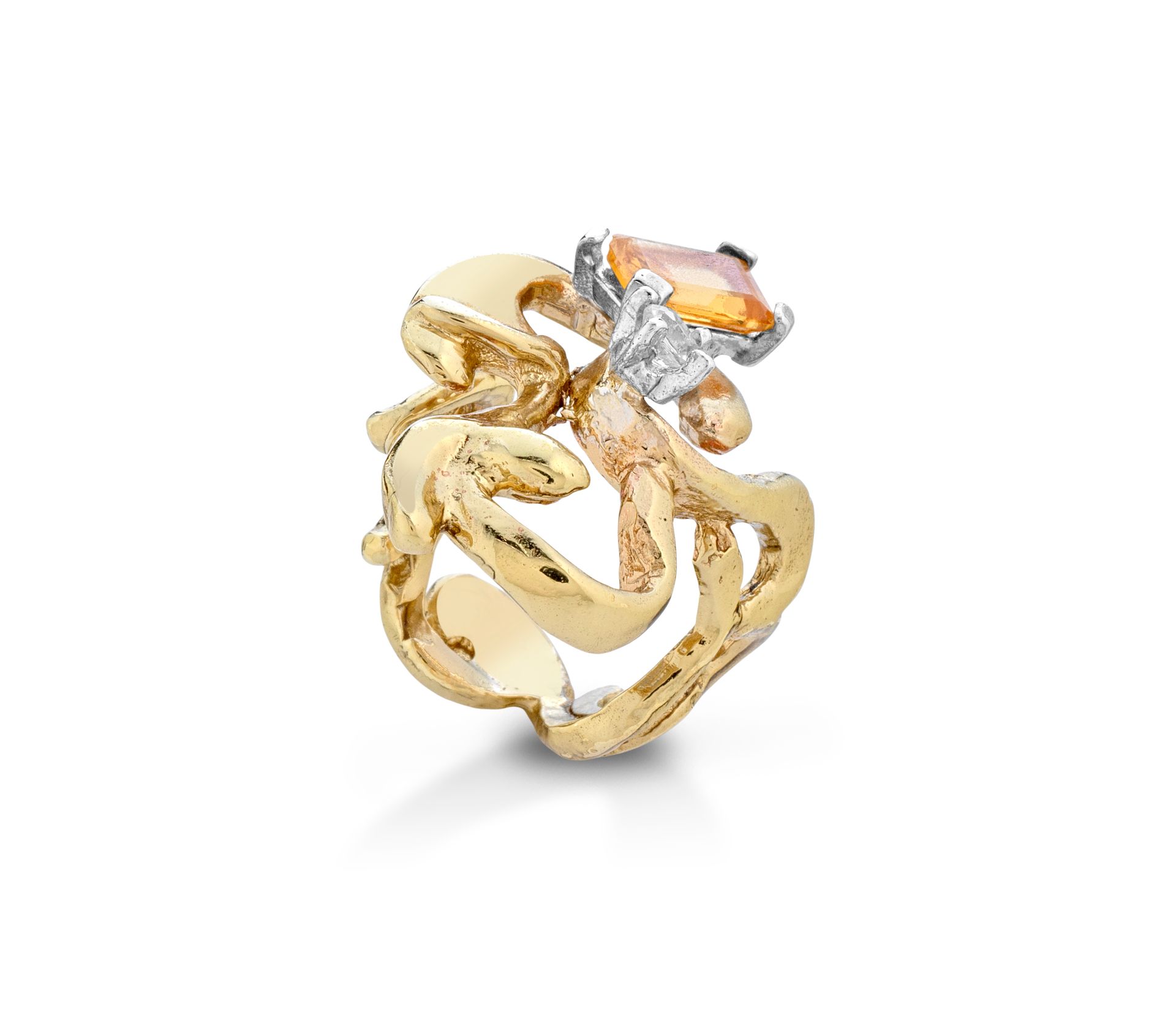 Anello in argento, bronzo e topazio con bagno oro 18 caratI