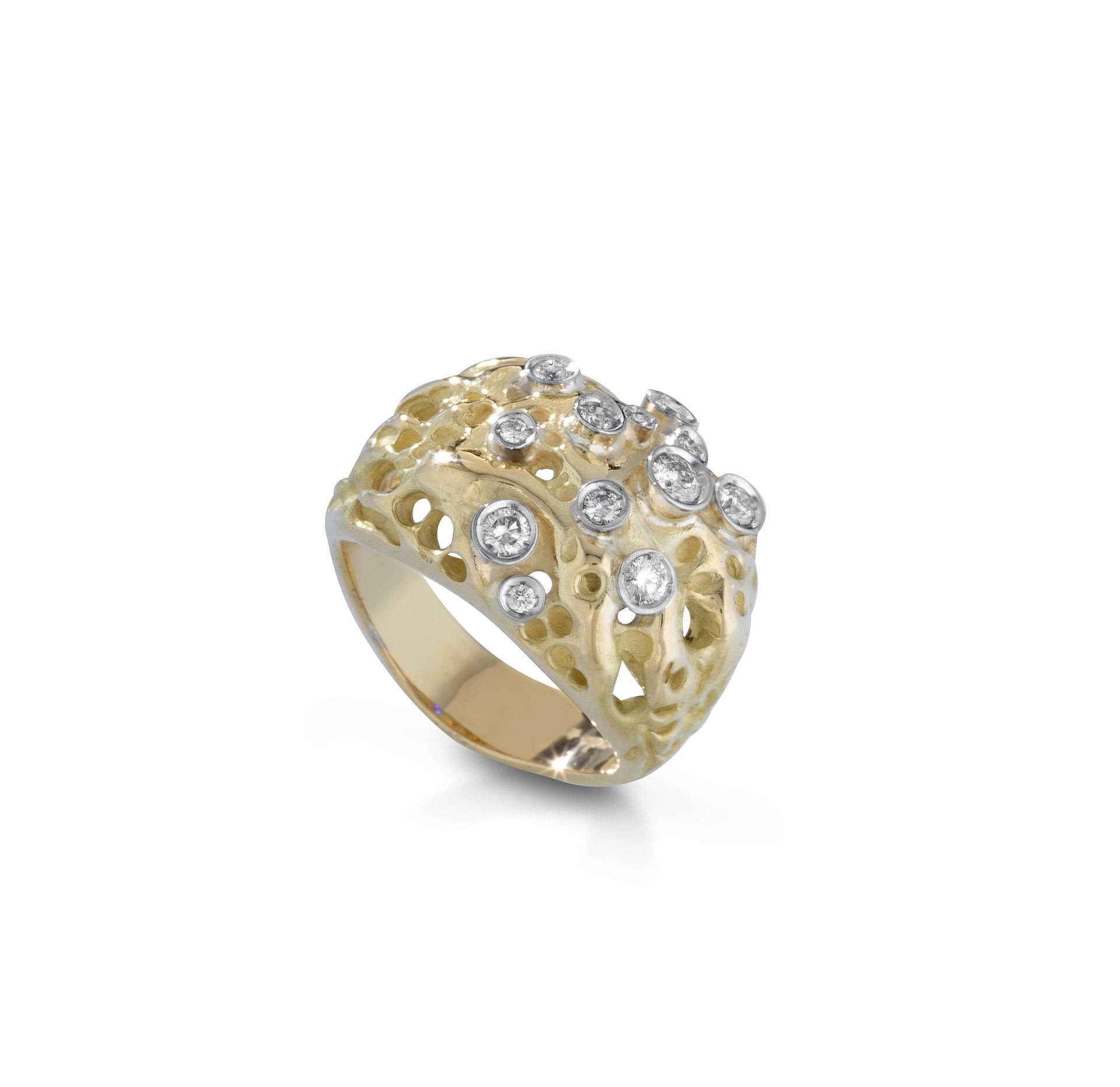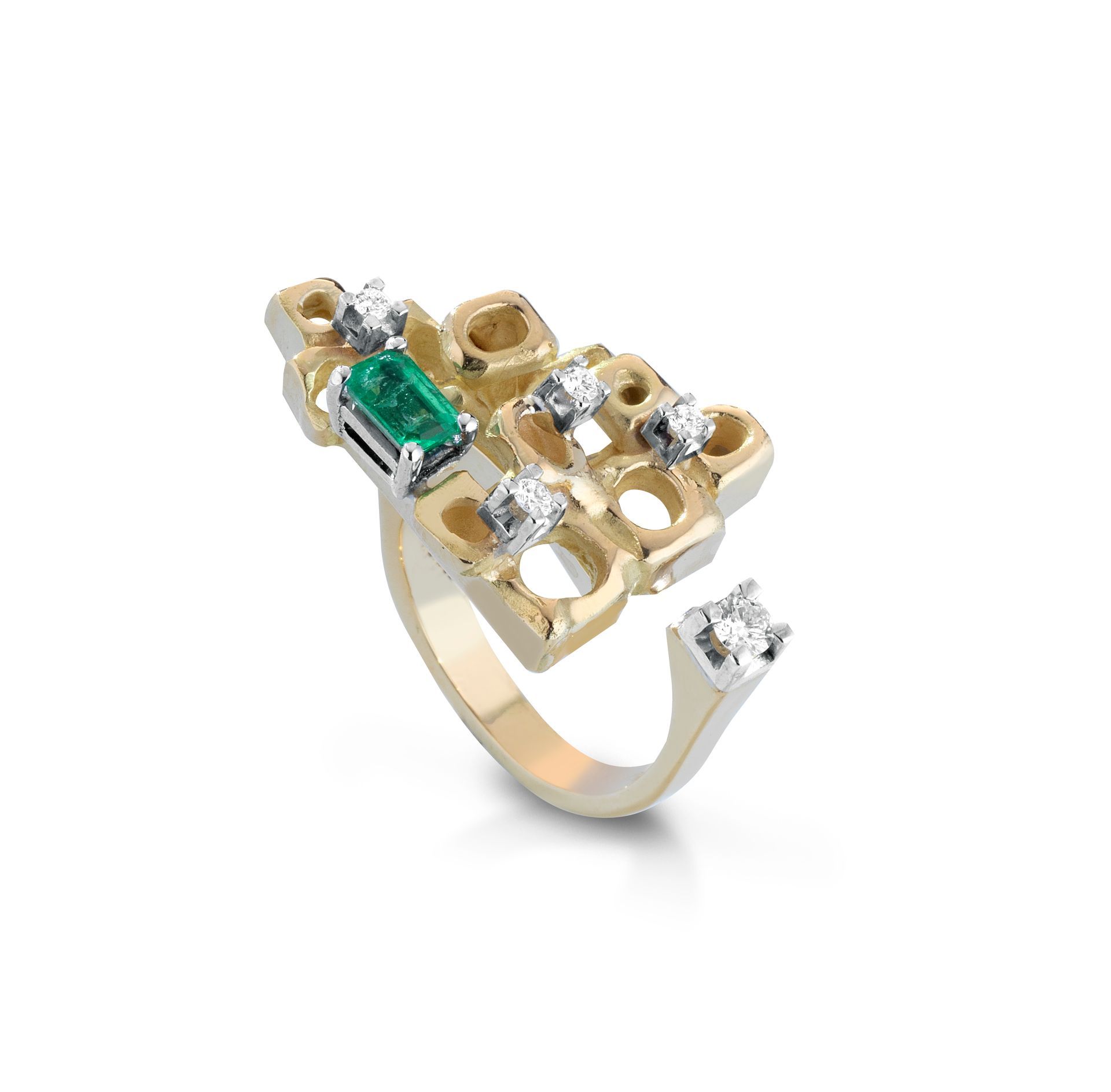 Anello in oro, diamanti e smeraldo auto-regolabile