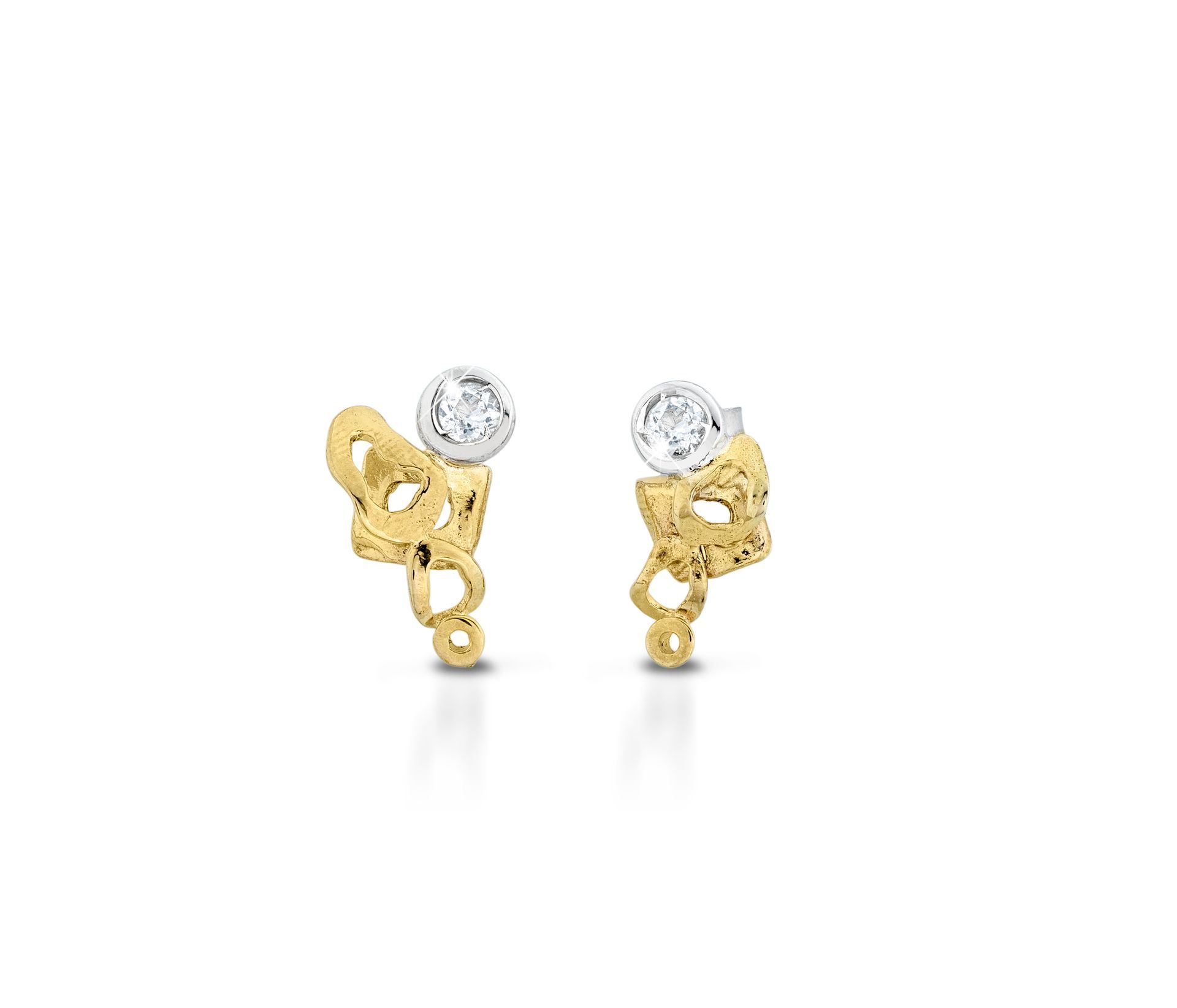 Orecchìni in bronzo, argento e topazi bianchi con bagno oro 18 carati